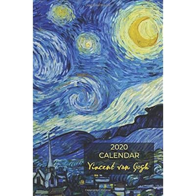 Vincent van Gogh - 2020 Calendar (The Starry Night)This 2020 Calendar is a Perfect Bound 6x9 Planner with Vincent's Starry Night featured on a beautiful wrap-around image on a matte cover. Each month of the year features one of Vincent's masterpieces:LIST OF VINCENT VAN GOGH’S PAINTINGSSELF PORTRAITCAFÉ TERRACE AT NIGHT (1888)SUNFLOWERS (1888)IRISES (1889)BULB FIELDS (1883)APRICOT TREES IN BLOOM (1888)WHEATFIELD WITH CROWS (1890)FISHING BOATS ON THE BEACH (1888)BEDROOM IN ARLES (1888)ALMOND BLOSSOMS (1890)POPPIES AND BUTTERFLIES (1890)THE STARRY NIGHT (1889)STARRY NIGHT OVER THE RHONE (1888)ORCHARD WITH PEACH TREES (1888)A monthly calendar is set within each painting followed by pages for notes for each month.Enjoy!