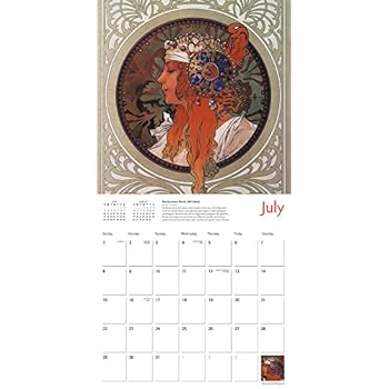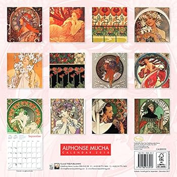 Alphonse Mucha 2018 12 x 12 Inch Monthly Square Wall Calendar with Glitter Flocked Cover by Flame Tree, Czech Art Nouveau Artist Painter Illustrator Designer Details