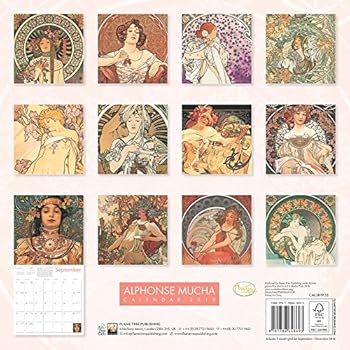 Alphonse Mucha 2019 12 x 12 Inch Monthly Square Wall Calendar with Glitter Flocked Cover by Flame Tree, Czech Art Nouveau Artist Painter Illustrator Designer Details