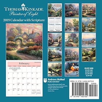 Thomas Kinkade Painter of Light with Scripture 2019 Mini Wall Calendar Details
